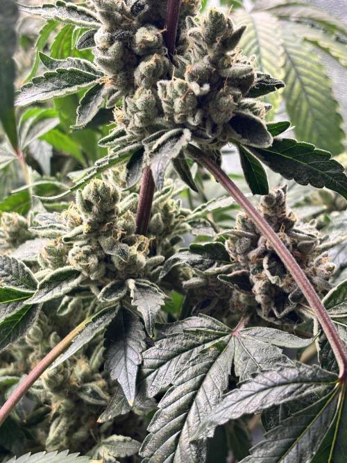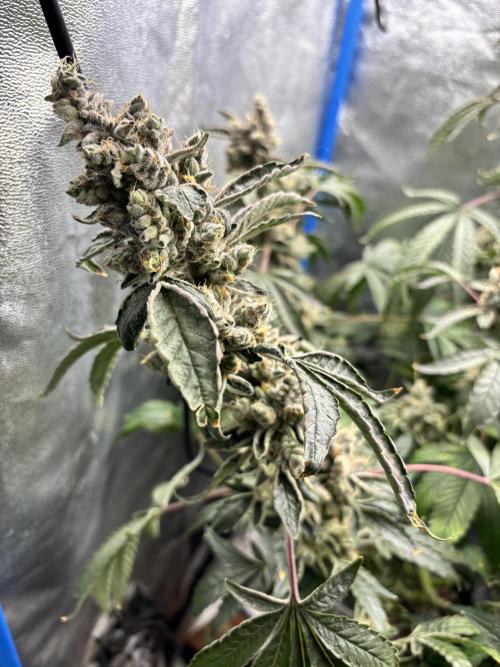 Flowering and growing thickkk, leaves are definetely discolored and are slowly dying as the buds consume them, im thinking of letting one more week of growth before flush, or should I flush now? What do you guys think?