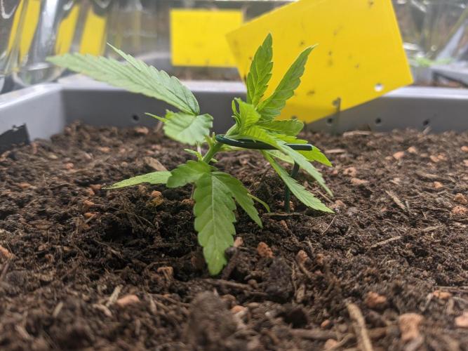 lazy_organics EN: Upped the dimming to 50% and slightly raised the lights. Repotted into smaller containers with sturdier bottom, to avoid the previous flexing. As this lost me some amount of soil i reapplied 70g of horse manure into the soil. Hydrations seems to be working better with the new wicks and my sturdiest plant so far is about to develop the third node. One of the Cherry Runtz seedlings died, because the root got stuck in the piece of paper i used to keep its moisture up, so i added some freebie seeds (Critical Punch - will add another report) to not waste space in the boxes. GER: Die Lampe läuft jetzt auf 50%, in der Hoffnung dass die kleinen Keimlinge so besser wachsen können. Habe in kleinere Container mit verstärktem Boden umgetopft, wobei ein Teil der Erde, die ich ursprünglich hatte, weggefallen ist - demnach habe ich noch einmal 70g Pferdemistpellets ausgetragen. Mit den neuen Dochten scheint die Wasserversorgung besser zu funktionieren. Um keinen Platz zu verschwenden, habe ich ein paar kostenlose Samen (Critical Punch) neben die Cherry Runtz Pflanzen gesetzt. Einer der Cherry Runtz Keimlinge ist mir verreckt, weil die Wurzeln in den Fetzen Küchenrolle, den ich zur Bewässerung benutzt habe, gewachsen sind.