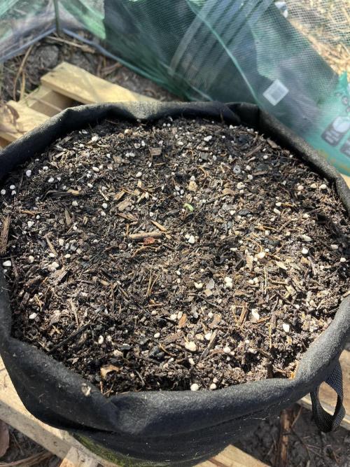 SydneySiders She's coming up nicely, sprouted on day 3, and looking healthy. On day 5 we folded down the sides of the grow bag to give her more sunlight. watered with 1.6 liters, twice this week