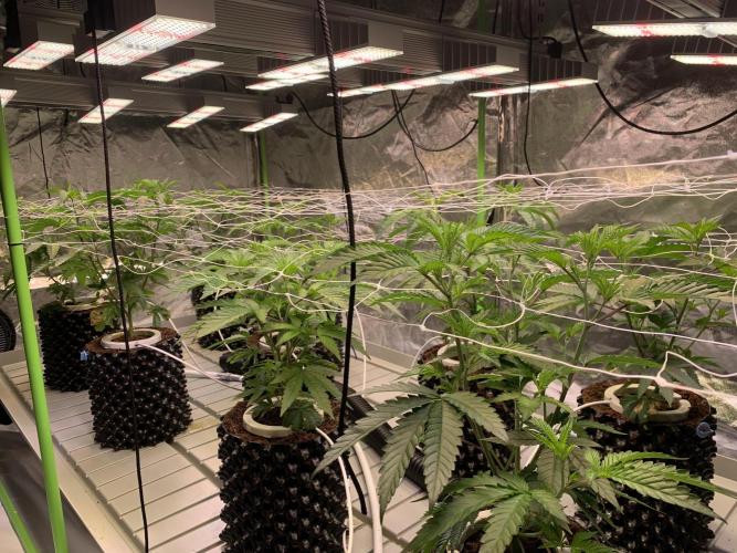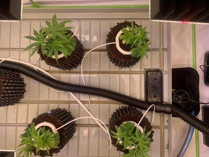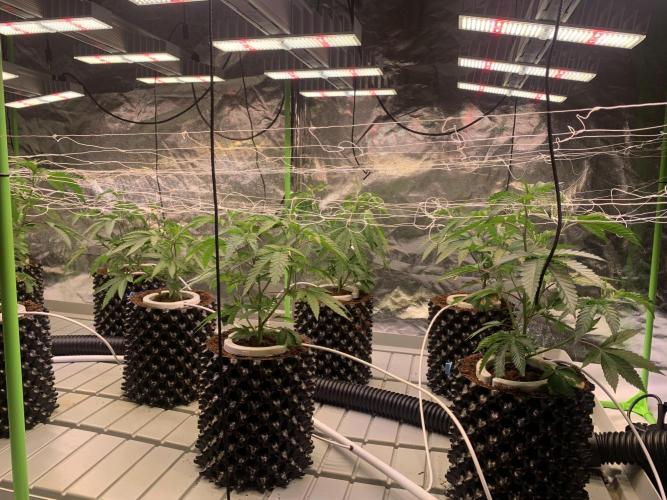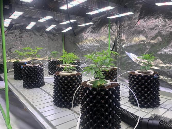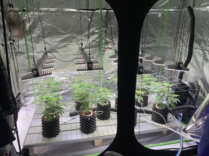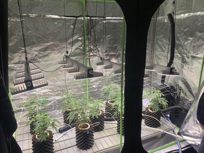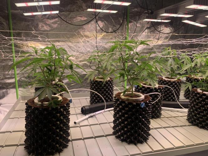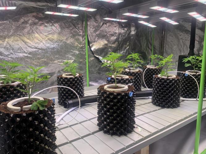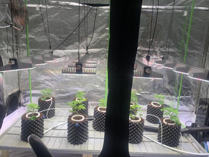 The plants were then placed into the grow tent and watered to runoff using the irrigation system.