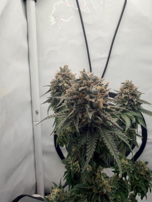 During weeks nine and ten, the plant entered the final and most intense stage of flowering. Buds continued to swell and gain density, while the aroma became distinctly richer and more complex, filling the grow area with sweet floral notes. All parameters were kept stable, and the regime with Plagron Green Sensation and bloom nutrients continued, supporting maximum resin and terpene production for the final push.