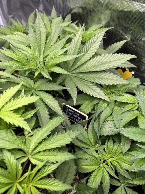 BUZIMAN Pictures taken today, 48 hours after repotting, it's now been 3 weeks of vegetative period, I started the lst at the beginning of the week before even repotting lol but it didn't complicate the task too much. I opted for 25 liter pots(AirPot for the Frozen Biscotti and plastic for the other) that I filled with BatMix from Plagron, the Lemon which was in a plastic pot developed much more roots (it was time to repot) than its congener of Dutch Passion which was in textile pots they could have stayed there a little longer but better sooner than to late. I also removed some leaves that were turning yellow (probably due to contact with the soil I may have been heavy handed with fertilizer too) and to allow more light penetration on the new branches. ✌️☮️
