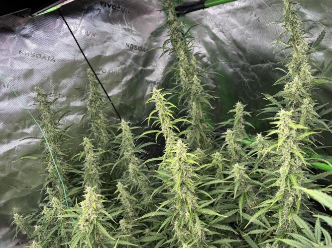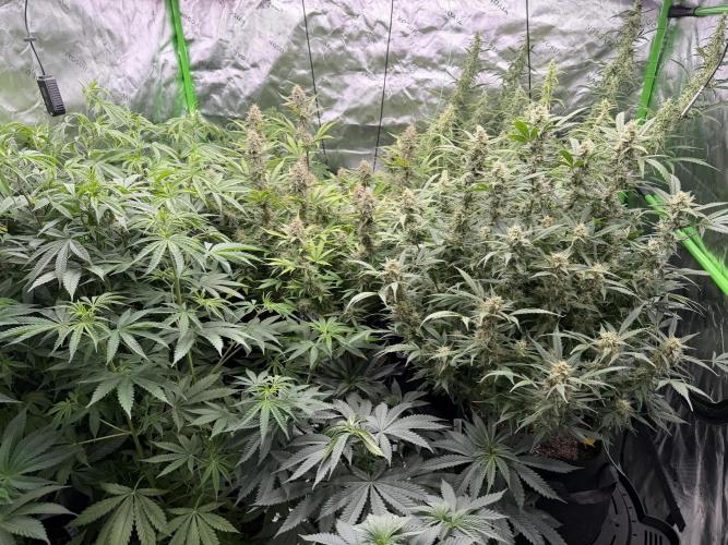 That_70s_Dude Just waiting on these autos to finish. This is mid week 10. Gorilla z looks like she’ll be done first. I see a few ambers on her. The gelato looks like the biggest , and the trainwreck smells the best. After 10 weeks of veg the kush plants are 4 feet tall with thick branches and should fill out the 5x5 all the way. I will probably cut a few clones before flipping the light.