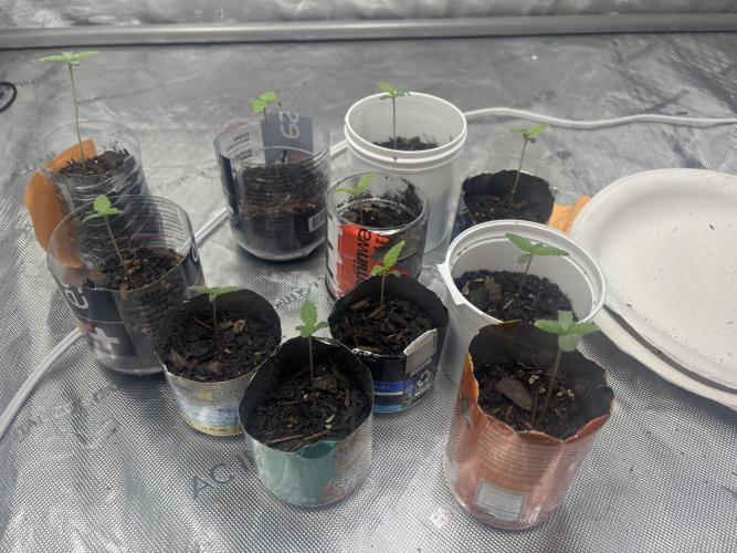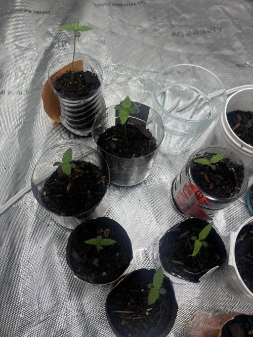 lebrongrows Began germinating the seeds on 9/20 using the paper towel method. Planted all but one seed into some cups and beer cans on 9/22. The other seed is germinating, but the tap root is just a bit slower than the others, so will wait another day before planting it. Sterilized the tent with some bleach/water solution, and letting it air out over night, so will transfer in the seeds tomorrow morning (9/23).