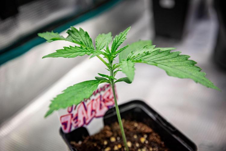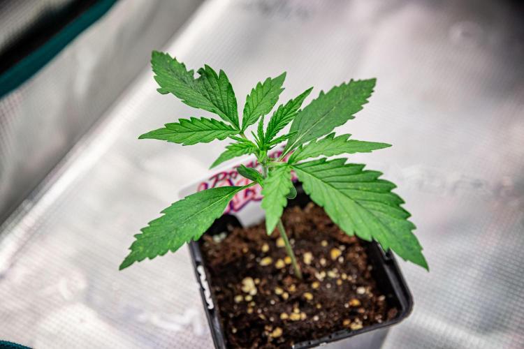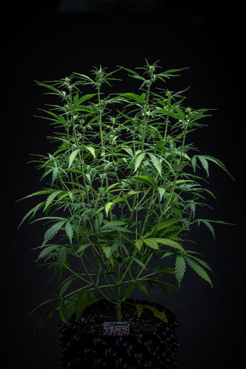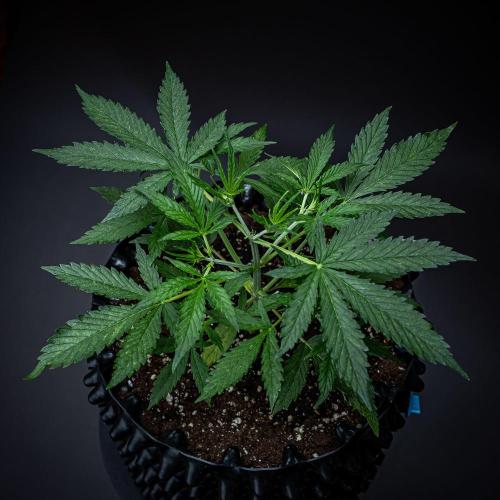 We know a lot of people say you should never top an auto flower – but with limited space in the tent, it's a good solution to keep an even canopy without much work.