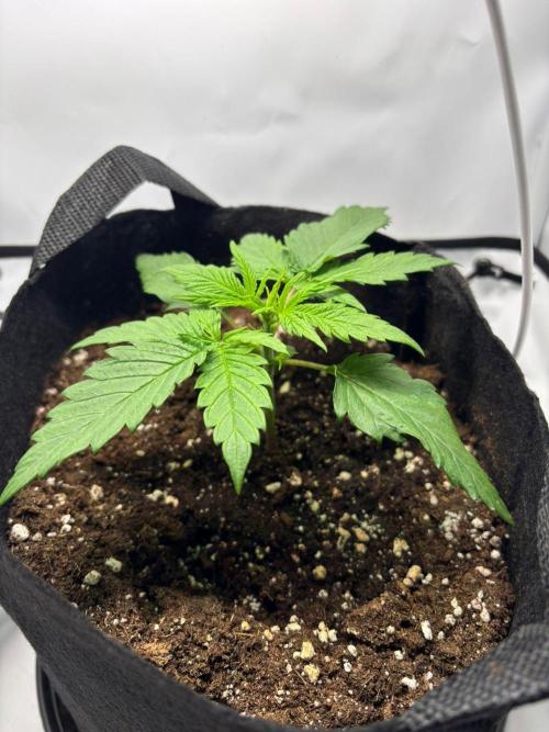 Außerdem habe ich sie diese Woche getoppt und schon ein bisschen mit LST angefangen, um sie schön flach und buschig zu halten. Sie hat den Eingriff super weggesteckt und zeigt keinerlei Stressanzeichen – ein gutes Zeichen! 🌞