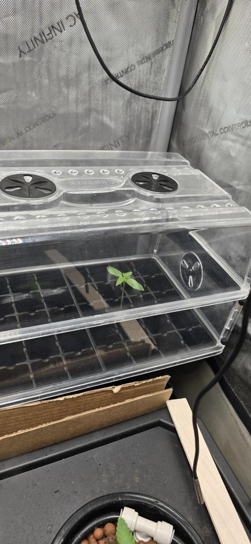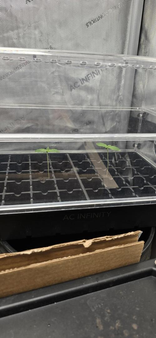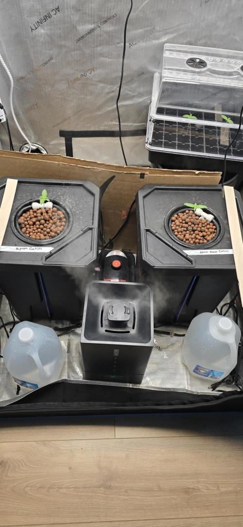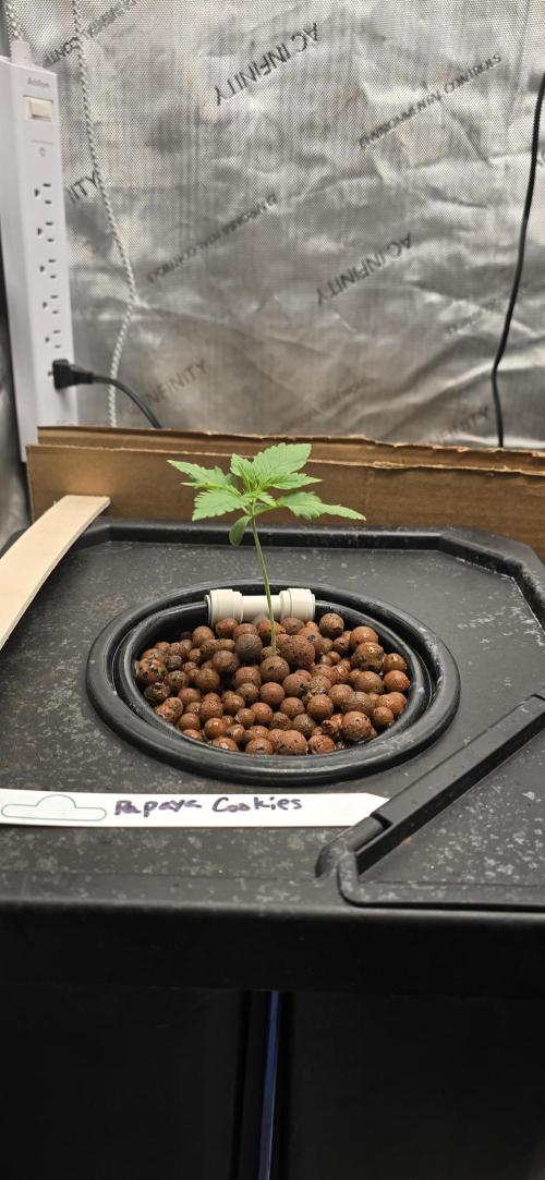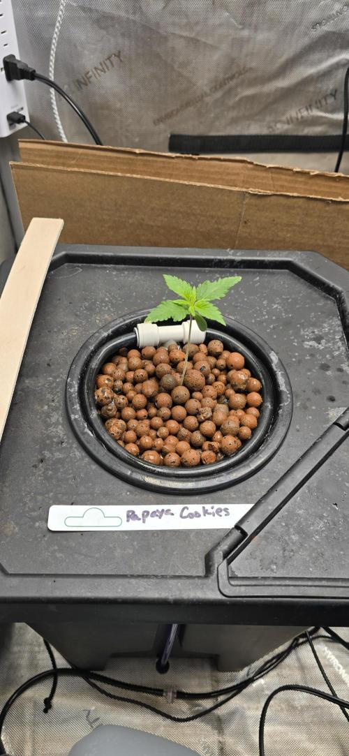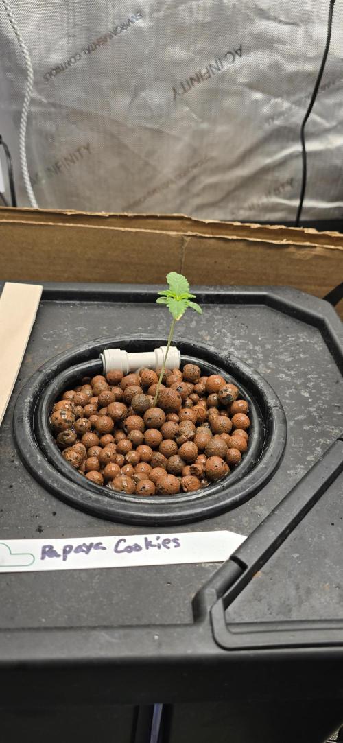 Prilyfe13 09/23/2025 Day 2 and I already screwed up. 2 nights ago I popped my seeds in their cups of water for an overnight soak. Unfortunately I didn't know the grow light would turn on in the middle of the night as I hadn't set anything up yet. So they got 7 hours of full on light while in their cups. So I might have some dead seeds. But they sank and are now in their plugs waiting to show themselves. We'll see. I have 1 more of each seed, so if these don't work, I'll try the last 2 out. 09/26/2025 Alright everyone who actually reads this. Lol. I'm back after a full year of no growing. It was torture. Anyway, what matters is that I'm back and have my babies ready to go! Honestly, I've gone through a few things and I might not be as detailed as previously. I will do my best, but it might be a bit less than before. I'll still keep up with the readings. And now I have the AC Infinity Ai controller. So I can get precise readings for CO2 and DLI or PPFD. I really hope you enjoy my diary. Thanks for reading. And on with the plants! So this run will be 2 plants in a DWC 2 bucket system by Spider Farmer. 7 gallon buckets. I'll be using clay pellets as a medium and Lotus Nutrients for my mix. As these are autoflowers, I'll be cutting the dose down to a quarter to start. I don't think I'll go over half the dose in the end unless they need it. 🤩. Currently I have these babies in the Germination System by AC Infinity with a heat mat, full dome and tray system, Ionbeam 11" grow lights for the seedlings, set to 20% power and an AC Infinity 4" fan. We'll be using the 3x3 AC Infinity Grow Tent grow system from last time. I do plan on getting a 4x4 in the next year or so. Probably sooner, but for now, we are in this one. We get to look forward to a time lapse video in this run as well. Woohoo! Just got a Vivosun Grow Tent Camera. Temp: 75° right where I want it. RH: 77% VPD: 0.66 kPa Note: It's been days and I have 3 flourishing seedlings. One Papaya Cookies popped but didn't make it. Oh well. You can certainly tell the difference between the two strains. The Papaya Cookies shot right up. Lemon Cherry Cookies is a bit more stout, but both of them are identical in height. One of them only has one cotyledon. Interesting. We'll see how she does in the race to the final pot. 09/27/2025 Today we start with 3 extremely healthy plants. The Papaya Cookies is taking off and looks like she may end up pretty big. The Lemon Cherry Cookies are showing their stout and more compact feature. You can tell they are doing quite well and are also extremely healthy. Probably the most healthy seedlings I've had the pleasure of growing. I'm very impressed so far. So I had to learn how to read my 4 in 1 meter. Lol. pH I get totally, it was the EC I was having trouble with. Next is how to understand ppm with the TDS part of the meter. Wish me luck. I don't understand the percentage part of the light meter reading for the AC Infinity AI controller. Is it DLI? PPFD? Or some other unit of measurement I don't know about yet. Anyone know what I'm talking about about? Anyway, we are looking at some fantastic readings today. The Germination System environment is ideal and basically spot on. The light is still set to 2. I might set it to 3 in a couple days when they start showing their first set true leaves. Germination System: Temp: 74.2° (could be higher IMO) RH: 78.7% perfect! VPD: 0.61 kPa great! Lung Room (Living room) Temp: 72.1° RH: 47.3% (could be a tiny bit higher) VPD: 1.40 kPa Note: I'm having a bit of trouble understanding how to feed a 7 gallon bucket everyday for my DWC system. Like, don't I just wait to top it off and add the appropriate nutrition solution based on the single gallon, let's say. What am I supposed to do here? Lol surely I'm not dumping in an entire dose for a 7 gallon setup am I? Won't that increase the solutions potency causing nutrient burn? I really don't understand. Any help would be greatly appreciated. Anyway, it's a beautiful day. Toodles! Update: She survived! The other Papaya Cookies somehow survived. I ripped the top of the plug apart and found a baby seed with a small tap root, so I put the whole plug back together and put it back in the Germination System. Somehow she survived and is breaking through the plug. That picture was taken this morning. I'll get another picture tomorrow, but her stem is almost already out. Insane! How resilient is that?! I mean, really! Wow! We'll have to see what happens tomorrow. Too bad she's not being kept. I wish I could, but I only have 2 buckets. Sad. 😢 Same thing with the other Lemon Cherry Cookies. I think I know which one I'm keeping, but I'd rather keep the other one too. Hell, I'd rather have kept all 4. I should have bought the 4 bucket system. But I'm in a 3x3, so 4 would be overkill. Lol. Ok I'm done. 09/28/2025 The other Papaya Cookies sprouted completely. Wow! I definitely thought she wouldn't make it. So late to the race. Unless she somehow magically catches up before the first true leaves, she's not a keeper. Definitely wish I had a couple more buckets. But I've learned my lesson. 4 plants will not fit in a 3x3. Well they will if they're all the same size. My plants however are never the same size. Anyway, the other 3 plants look amazing. Still super healthy and have slowed their stretch. Time to stretch them roots. So I was having a debate with myself. Why wait for the seedlings to have all the roots showing before transplanting to clay pebbles. Wouldn't it make more sense for the seedlings to grow into the pellets and grow down? Anyway, I digress. I'll have to listen to the experts, but I still can't shake the fact that when the roots grow out of the plug, they will have direct contact with the pellets, causing them to naturally grow into the pebbles without any stress. Obviously not using nutrients yet, just the drip thing to keep the pebbles wet. Why would I want to wait to transplant with roots showing already? Isn't sooner better? E