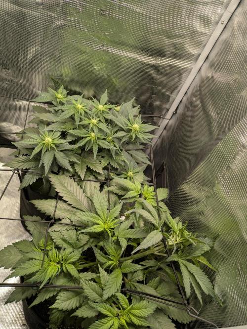 LowBudgetGrower Since the plants don't show any nutrient deficiencies so far, I'm not fertilizing them yet. And since the plant grows very bushy, I don't have to train it much for SoG. I just keep a few large leaves down to give the new shoots as much light as possible.