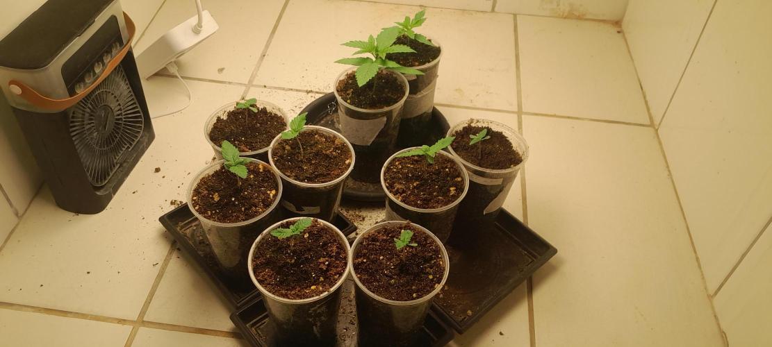 Jardineiro_Br Essas sementes são de cruzamentos que um amigo faz em casa das plantas de alta genética que cultivamos,essas ai mesmo são de cruzamentos da tropicana com plantas outras como a jack herer , a bluedream, a ice cream ,essas são as principais beses do quintal do amigo . Vamos ver o que vem delas .Já preparado os copos , dessa vez o solo está mais aerado pois como me orientaram colocari perlita e uma camada de terra de diatomáceas , para proteger de fungos pois com a chegada da primavera as temperaturas aumentam e o risco deles nos vasos de cultivo interno.