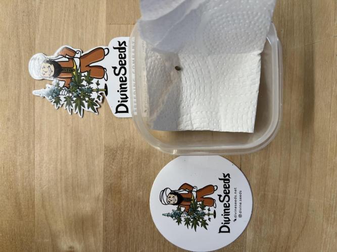 Obscurians Well I gotta say that Divine Seeds is spoiling me with those easy to open packages, the seed is kept in an airtight seal and is super easy to open. Just one day in a soaked napkin and she already germinated, seems eager to grow so my hopes are high for this one. This is also my third and last atempt so once again many thanks to Divine Seeds for providing those samples