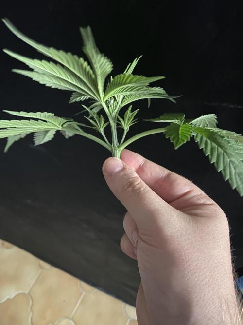 ElNass This was the week of her first enzyme tea, prepared with sprouted lentils. She drank about 0.4 L, and within two days I noticed faster top growth ๐ and shinier leaves ๐. She now looks compact and bushy ๐ณ, with five strong nodes formed. Sheโs officially ready for her first topping โ๏ธ๐, the cut that will turn her from a little seedling into the queen of the tent.