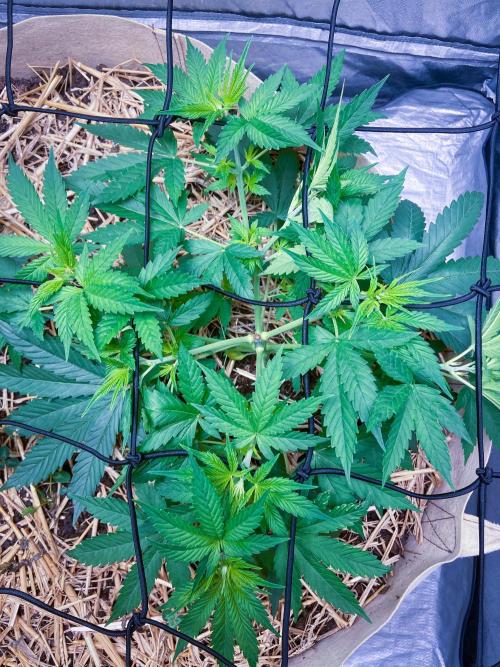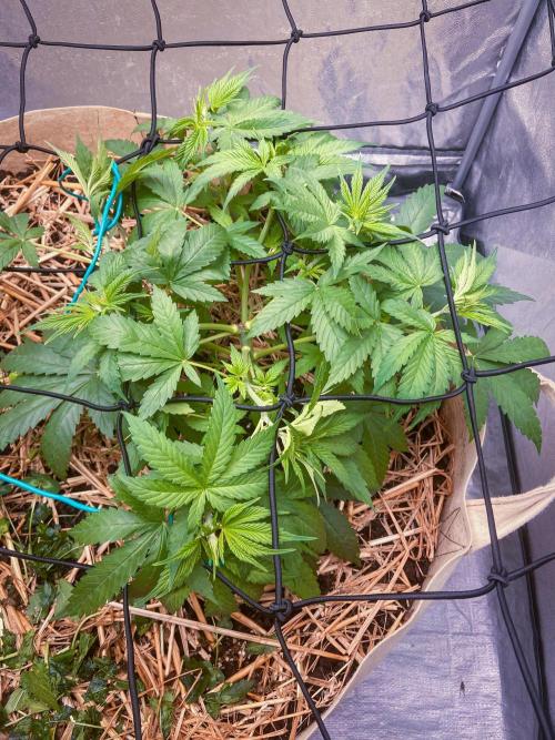 I started with a good LST session to open her up and placed the SCROG net to shape the canopy for perfect light distribution.