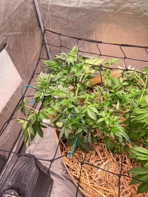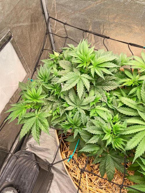 After the topping, she’s begun spreading out nicely helped by the LST and SCROG training, opening up her structure for even light and airflow