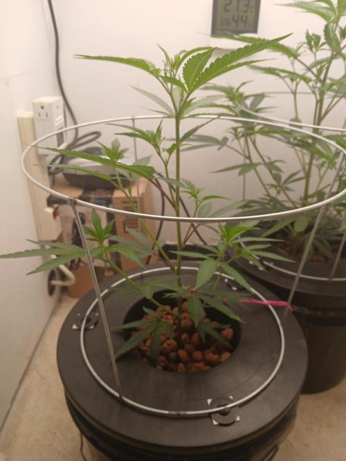 Thundrfuk Okay Peeps, Made it a week and these girls are starting to grow! Took a while for 2 of them to start making some new growth, they did have some transplant shock. I am glad the coco plugs these clones came in held together in my DWC setup. Little worried at first, kinda was expecting rockwool but whatever works. Roots have dropped and now below the basket. They look 100 times better now and getting better everyday! Stay tuned folks👊