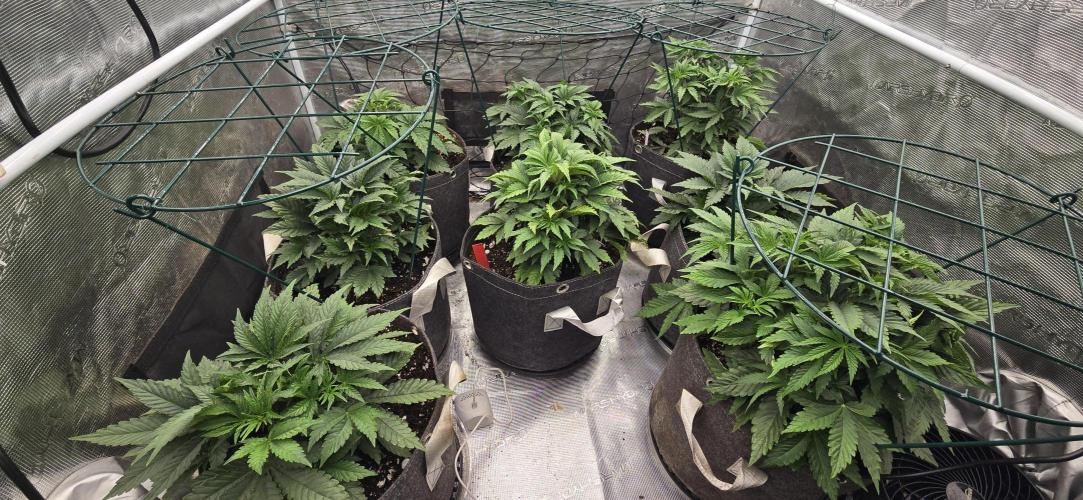 PhenoPhi Looking pretty good.... I like these metal trellis nets i got, still can move the plants around.. incase you need to preform a flush defommmmmmĥ