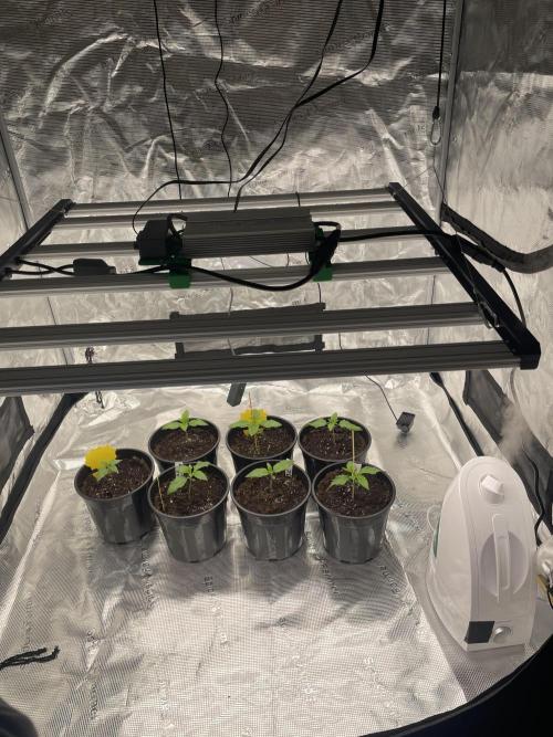 Following the same approach we used with Blueberry Cupcake, germination was done using the water + Root Riot + propagator method. From five seeds, four successfully sprouted, and we will be selecting the two most uniform plants to continue with.