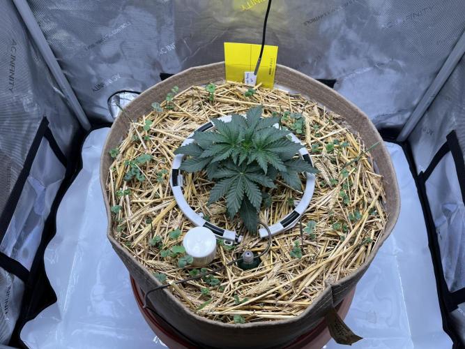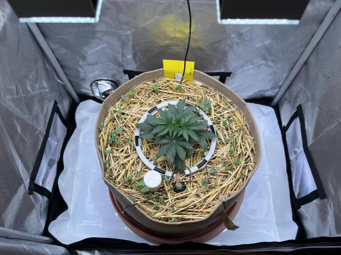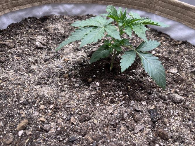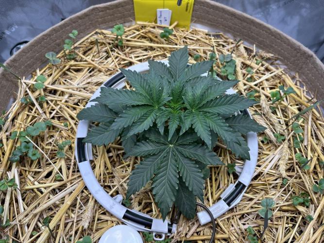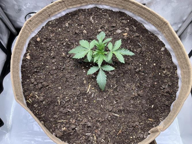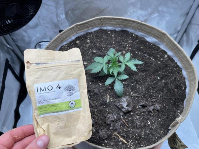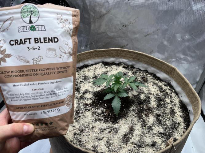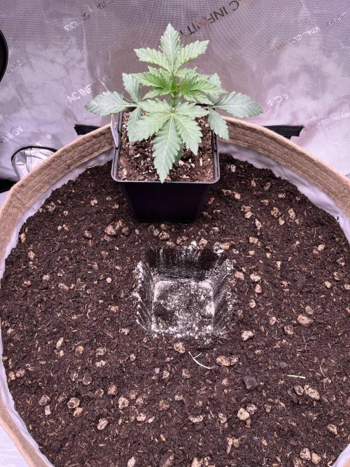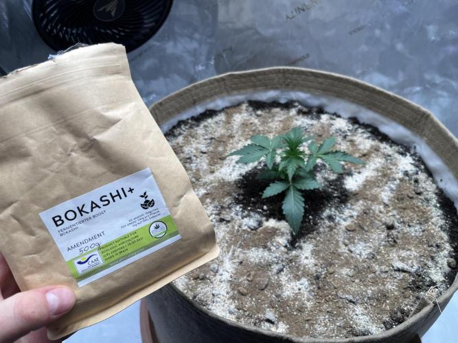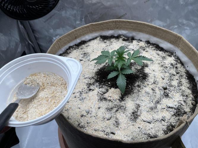 Added to the total soil volume of 4.5 liters Basalt, Gypsum and Kelp meal (1-TL/Tsp each). The kelp should support with the root development as there are a lot of growth hormones contained. Watered in with 5% of total soil volume with filtered tap water. No PH adjustment.