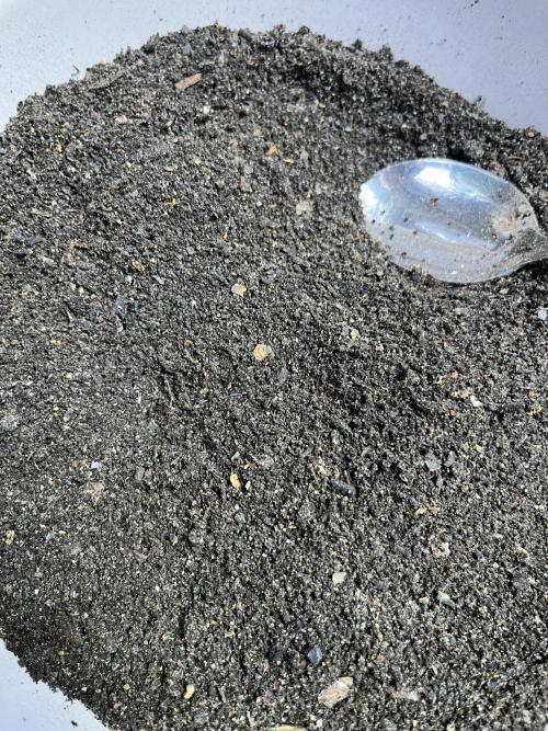 The minerals was first mixed into the base mix, second nutrients and last aeration. My idea is to have a high diversity of the single ingredients, that there is no single ingredient dominating the soil mix. At the end the mix was watered in with 5% (total soil volume) filtered tap water and tilled every few days.