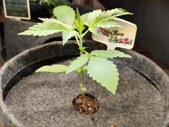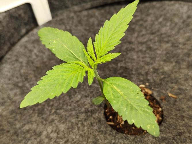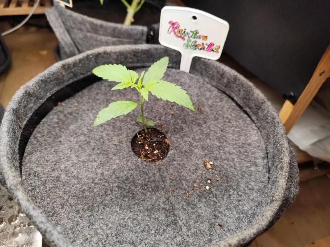 Tag 10: Die Rainbow Sherbet entwickelt sich sehr schön, das 2. echte Blattpaar ist schon zu sehen.