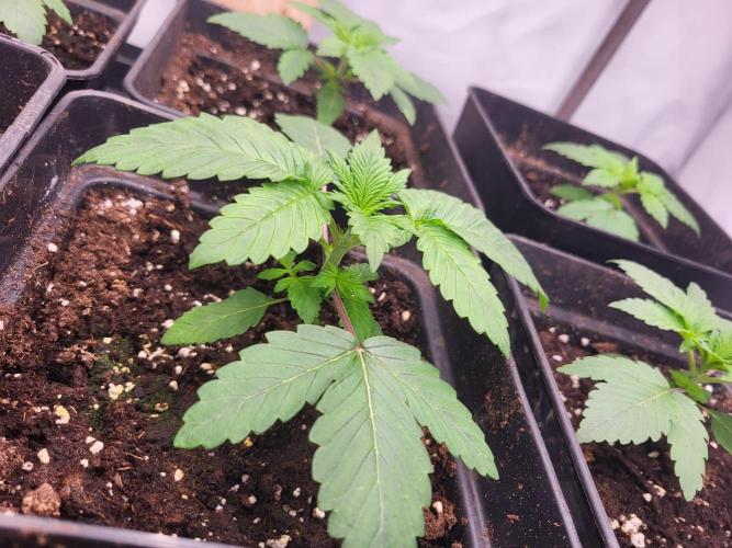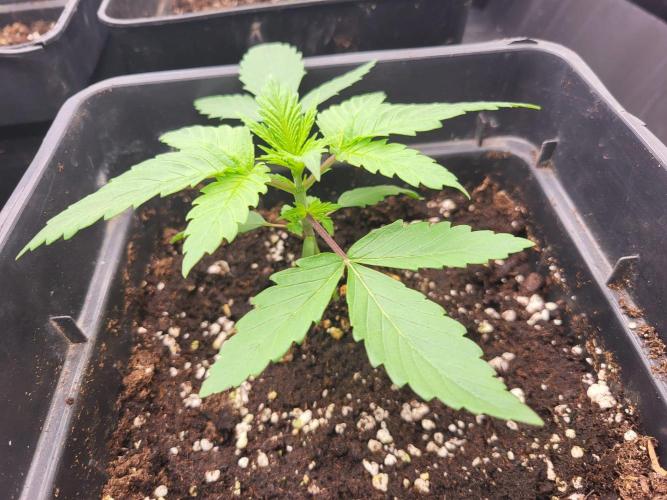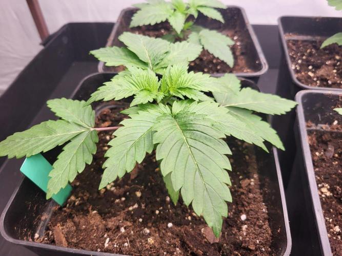 Breaking-Bud En la foto del día 7, se observan algunas hojas arrugadas, posiblemente por exceso de agua en sustrato, ya que el light mix de biobizz no drena tan bien el agua, al no haber gran sistema radicular para absorber el agua.