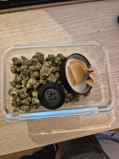 Update 13.10.: i put 2 frozen blue berries (raisin sized) in a 70% filled glas with about 45g for 6 hours. The aroma from the glass already improved and the moisture got up by 6%