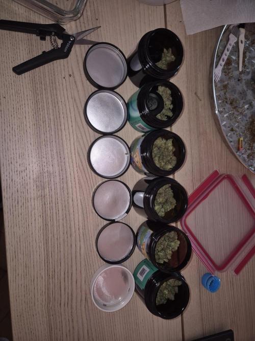 In the pic 2nd from last you can see the blueberry curing and in the last picture you can see the all dried buds - only premium flowers, I was very picky and I trimmed a lot