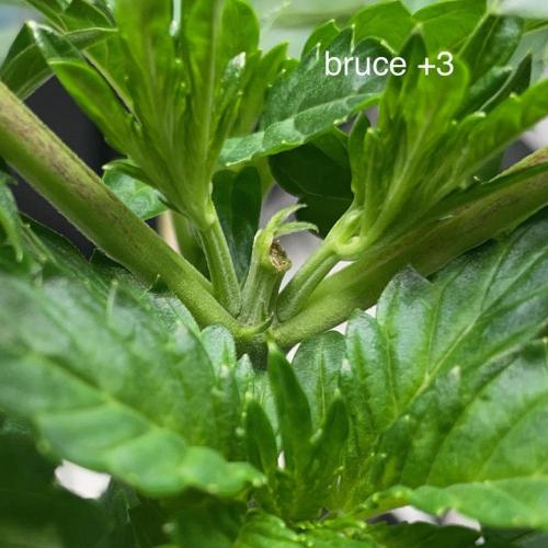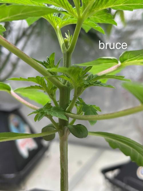 Bruce is the only one that needed some defoliation due to broader leaves, this were a lot of baby leaves that had not grown yet, better to get rid of them now. I leave one main leave on each of the two new heads and removed all the invward facing leaves. None of this was necessary on the other two.
