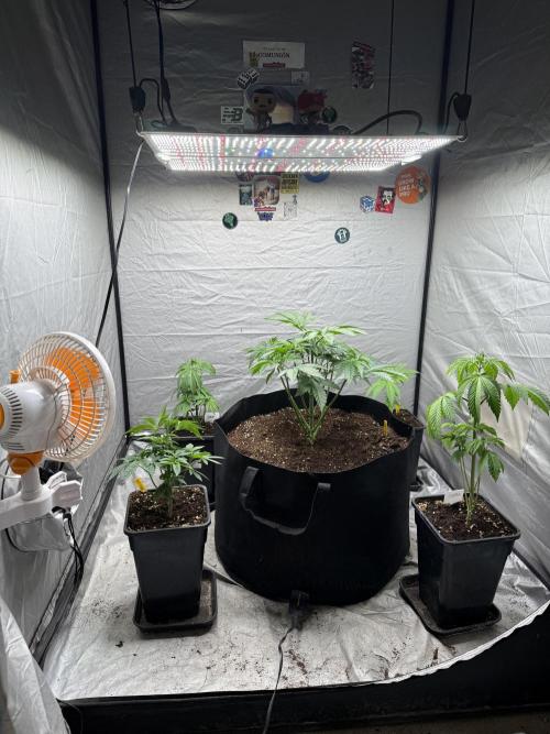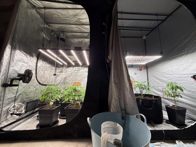 xmackobox Vale pues cultivo arrancado. En un futuro próximo en el indoor de la derecha, el que tiene la planta en 100L haremos una apical para dividir la cola en dos y además mas tarde, otras 2 apicales en cada cola para tener un total de 6 colas con la planta totalmente abierta. Haremos varios tutorados con piquetas y aplicaremos técnica LST