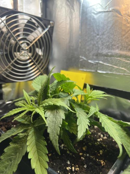 Beim letzten Gießen gab es 1ml Universal Dünger NPK 8-3-6. Beim nächsten Gießen gibt es ein bisschen CalMag. Blüte Start in den Nächsten 5 Tagen.