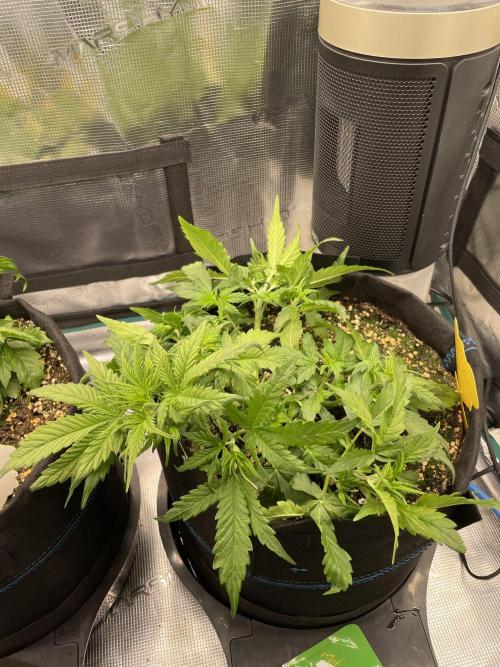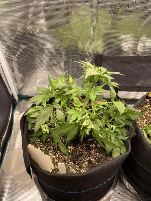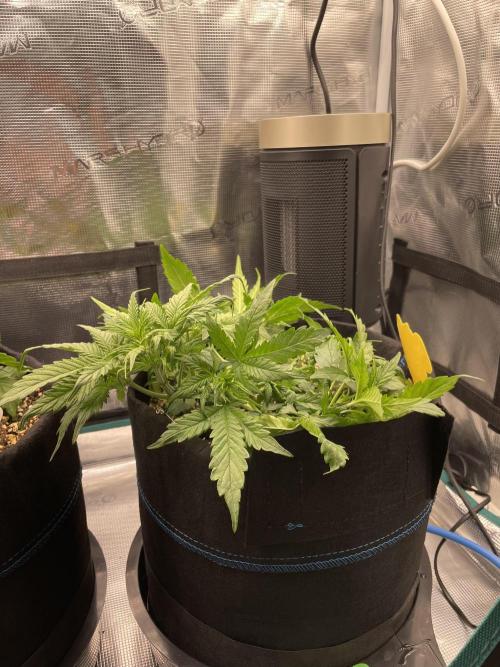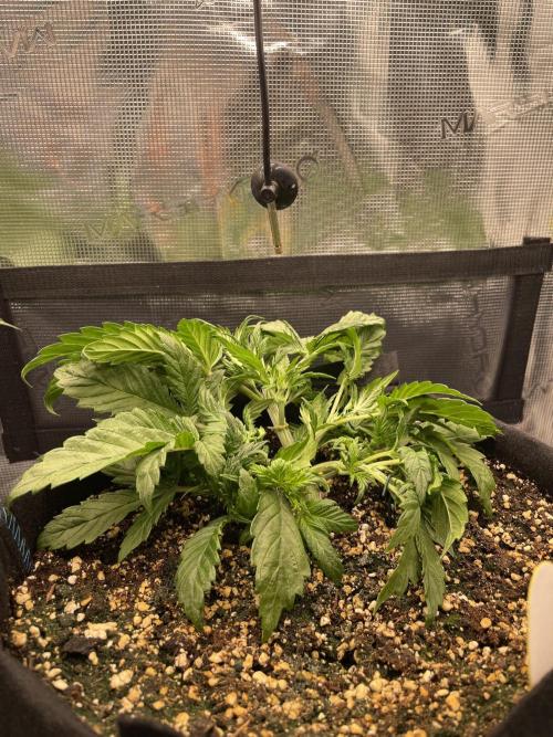 Whodeletti Tag 23 , ich habe ein wenig nachtrainiert (LST) und die Pflanzenspitze jeweils außen am Topf befestigt