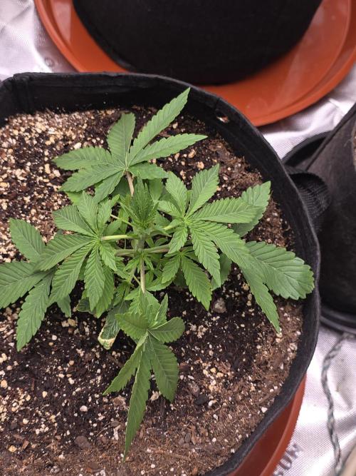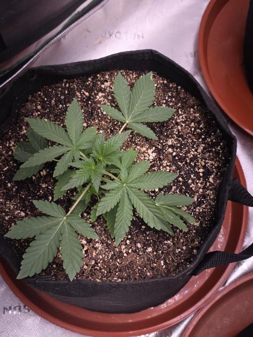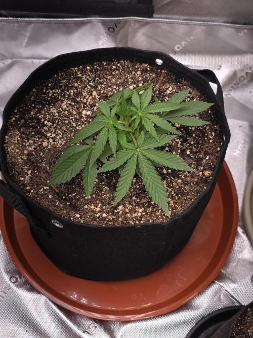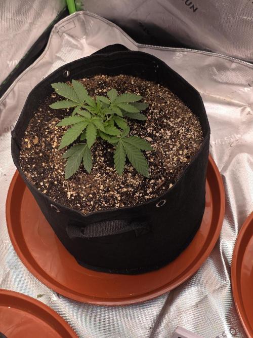 ShizFunkyFresh Had 4 seeds germinate, directly in their 5 gallon pots! Im looking forward to this grow. Im really hoping to get some of the purple and yellows this strain is known for.