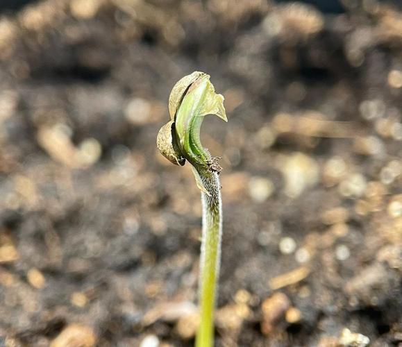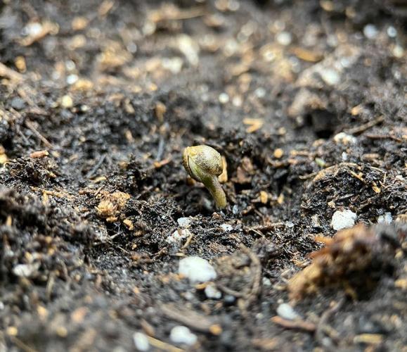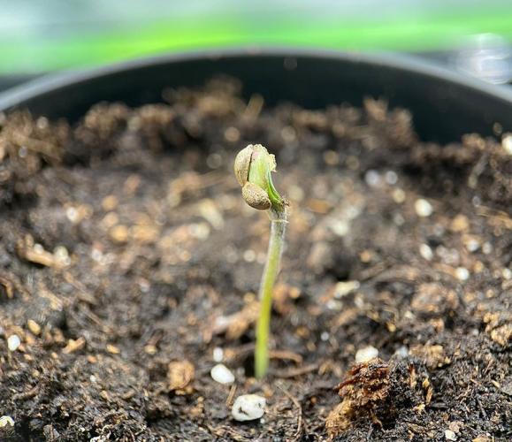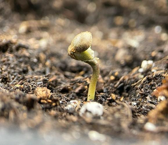 I potted the cracked bean in a 16-ounce BudCup with ProMix Organic seed starter mix.