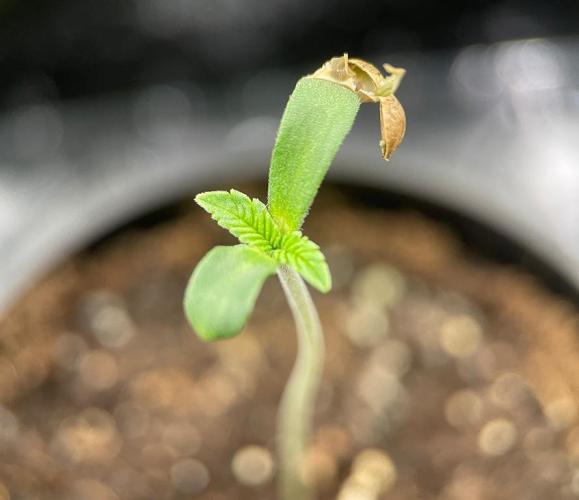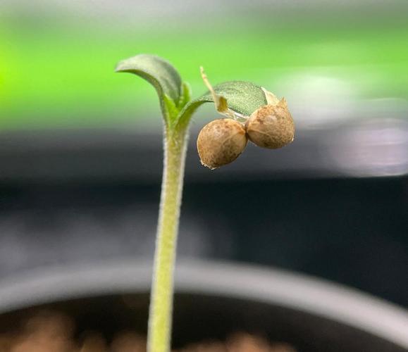 At 120 hours, the seedling is stretching, it has the first set of true leaves appearing, and is looking healthy.