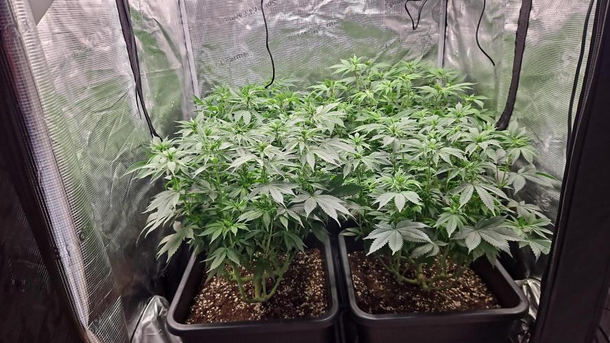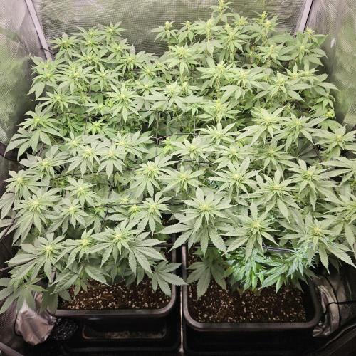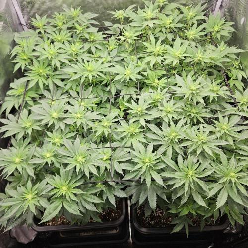 meity2312 Die Ladys Strecken sich ganz gut. Es wurde entlaubt da sie zu dicht waren und 30% der Triebe verdeckt waren. Das letzte mal wird dann in Woche 3 entlaubt. Nach 6 Tagen der Blüte kann man jetzt die ersten Härchen sehen. VPD wird bei 1,2 gehalten die Temperatur ist tagsüber bei 25 grad und nachts bei 21 grad. Sie sind schön saftig grün.😃