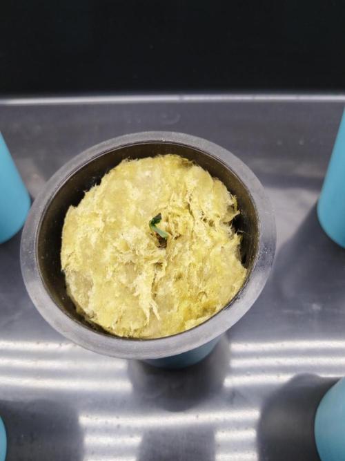 Day 4. Plant germinated seeds into rockwool cubes. Rockwool is two times pre-soaked in 1.50ec nutrient solution ( Athena PRO Bloom) 5.60 PH