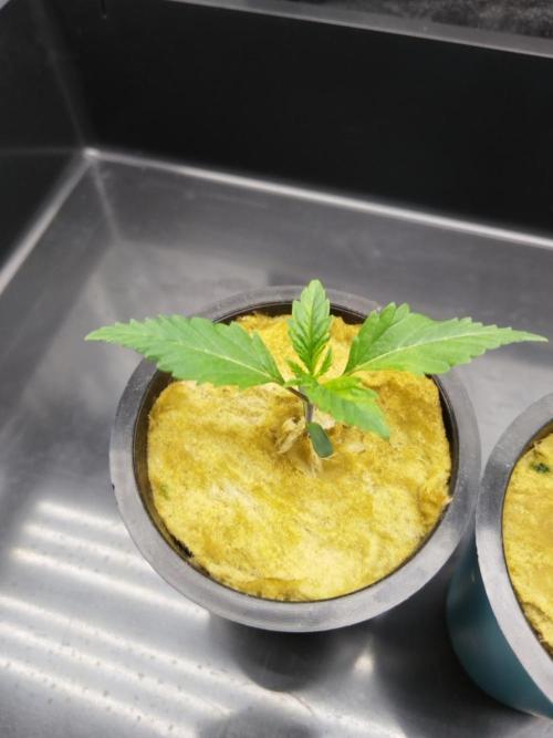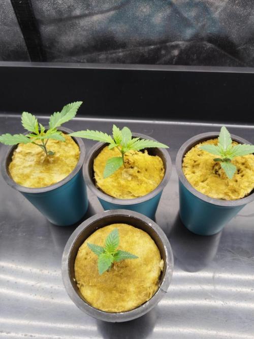 First week from sprouting is finish, going into week 2, second week of seedling stageRoots start to appear from the bottom of the rockwool cup