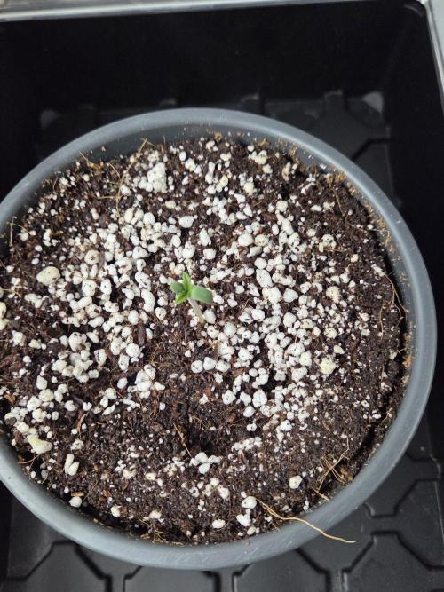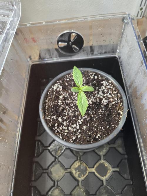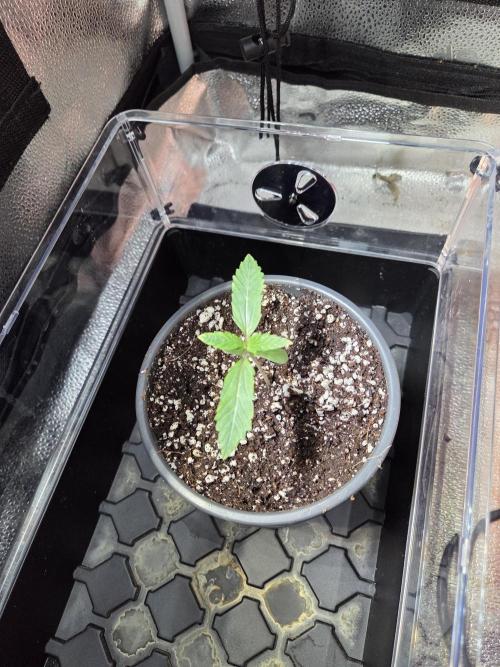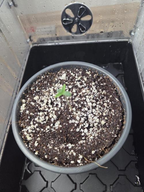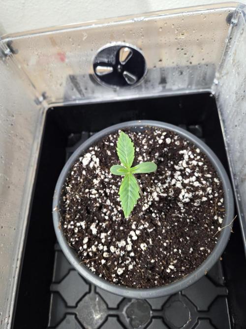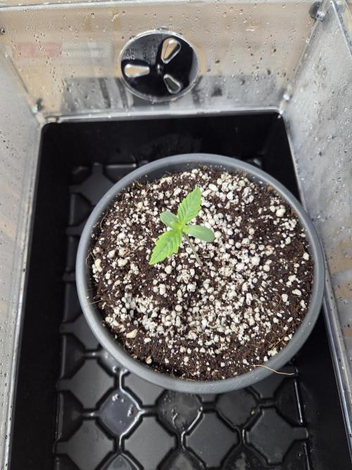 Schwarzer_Daumen Little baby in in a big pot. Keeping the humidity high, it's going to move into the tent soon, so it can get some air circulation. The nutrients are very light currently, I will increase them this week. still not sure if Enzymes and silica actually do something, but I have them, so might as well use them.