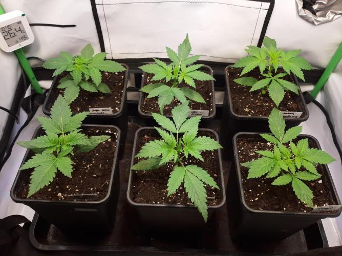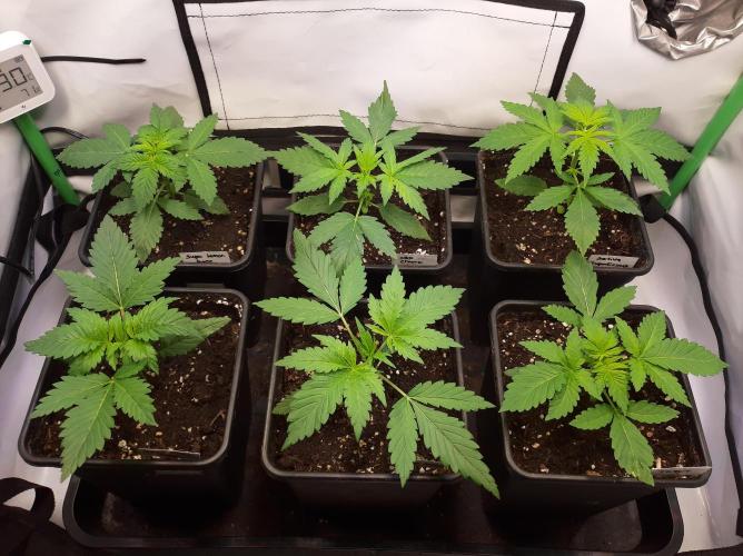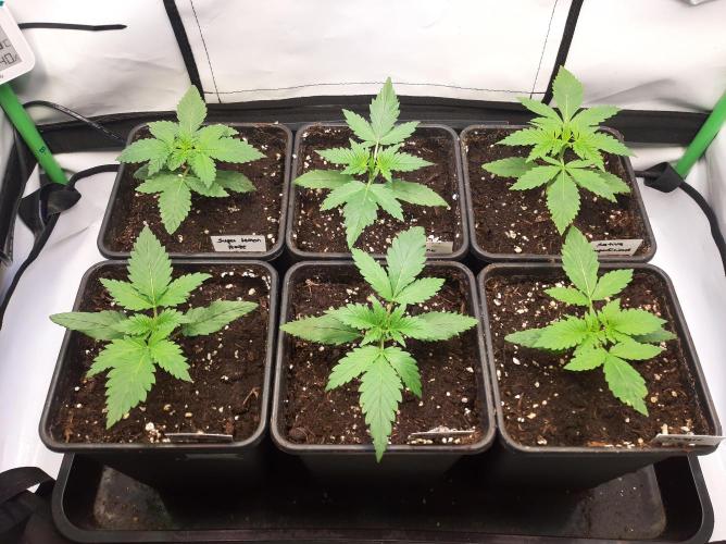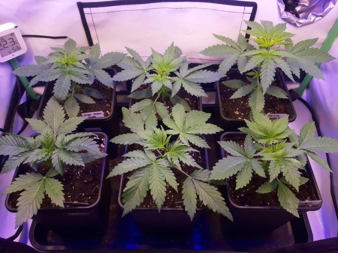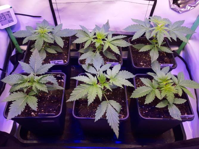 BOTAN1ST We should have repotted them a bit earlier. Due to the delayed repotting, they are now a bit smaller than they should have been. But they will catch up on that :) The light cycle has been changed to 12/12 so the plants stay small since they will bloom a bit longer. It's a test, especially the Nevill's Haze, which has a 16-week flowering period, shouldn't get too huge. We're curious to see how it turns out.
