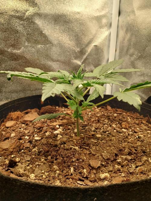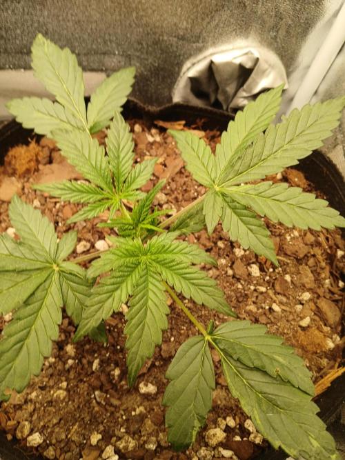 Reaperauto She looks a bit short and stubby, I'm going to assume she'll be bushy. Seems to be doing great. I have given a small dose of nitrogen