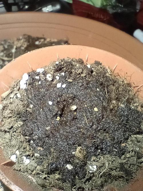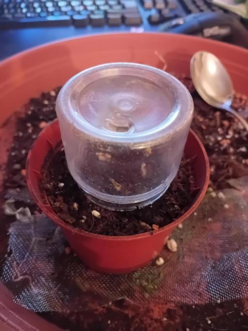 made a hole, filled it with cocos and some myco-granulat - put some soil and the seed (allready a bit cracked) into it and put a few mm soil on it. give some water and covered it.