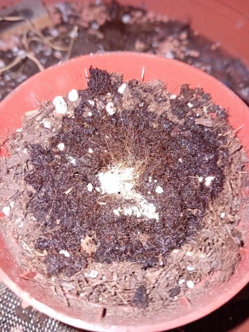 then i have opened the pellet and used the torf in the middle of the soil as lose center.