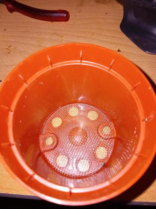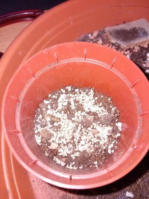 I_T_C_R_W___GROW small starter pot , mesh - so nothing falls trwo the holes, then some Seramis (or Perlite) , than half full soil ,then the Myco-granulat, than soil to the top.