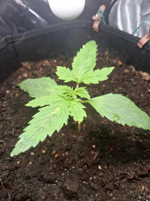 Angesetzt ist eine Runtz von Zamnesia. Es ist der zweite Grow überhaupt in der Box. Ich habe dieselbe Erde verwendet. Der Wurzelballen der Bluedream ist auch noch drin, ich habe den Setzlinge (1 Woche vorgezogen in Kokos Quelltopf) quasi genau neben den alten Stamm gedrückt.