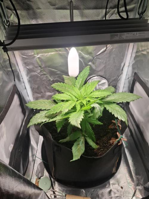 Die Pflanze entwickelt sich toll, der Stamm ist schön dick. Er ist fast so umfangreich wie der Stamm meiner letzten Pflanze nach der Ernte. Ich werde nächste Woche toppen wenn nichts dazwischen kommt. Soweit nichts besonderes.