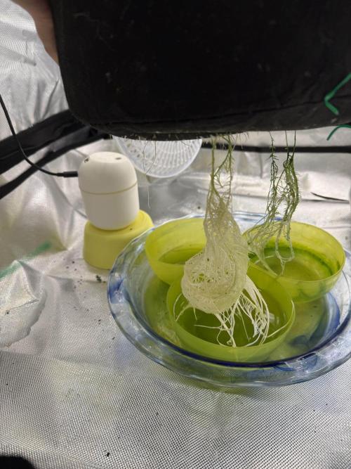Wouldn't be a first grow without a scare of the week. 😵 Last week we had an accidental topping, this week we have roots growing all outside the pot. On 9/16/25 I noticed the root growth out the bottom of the pot. My wildly unintelligent drain pan setup used bows to space the pot up and they collected runoff, leaving the roots with a nice bath of runoff water to grow into. Learning every week, this week I learned about air-pruning. Went ahead and cut these root growths off, purchased a 1$ Lowes runoff pan, and returned three bowls and a nice Pyrex dish back to the kitchen. About the same time of my root issue, within the next 2 days a good amount of leaves had slight yellow tips...
