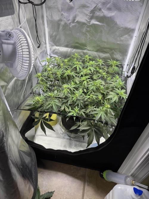 Besides accidently topping the plant, rest of week was generic. Consistent LST (much more careful lol). Growth was steadily aggressive, same full strength (1000ish EC) nutrient solution 2x a day(+100-200 runoff EC typically), adjusted the light as the plant grew. RH+Temps in good windows.
