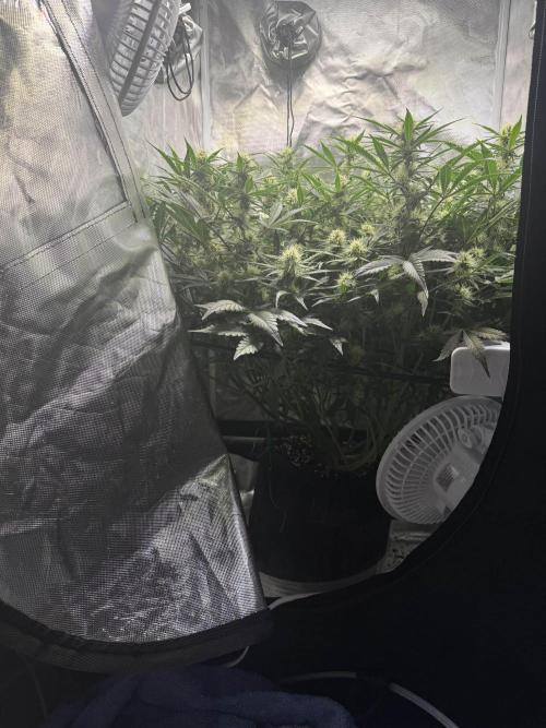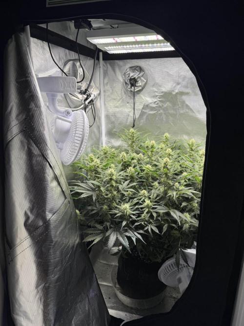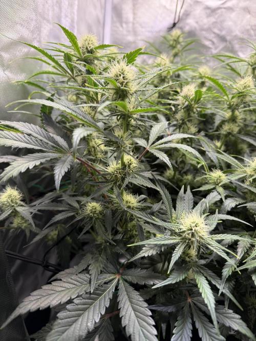 Towards the end of this week, around 10/2/25, in addition to the yellowing tips of the leaves (which seem to have slowed/stopped but not gone away), brown edges started to appear, some light taco'ing, and some praying leaves. This week I was extra busy and didn't have a ton of time to pay attention to the little details, at some point though runoff EC was nearly +700 so I flushed with half strength solution for a couple watering cycles and then it returned to normal. Humidity still fell in the higher side, purchased a lower end de-humidifer and placed it in my room. While not perfect it keeps my room at 45-55% and the tent follows about 5-10% higher. Not sure if my issues are caused by any of the above, some folk said it could be light stress so at the end of the week I dropped the LED to 80%, its at the absolute top of the tent but is still at about the manufacture recommend distance away for flower+100%. Growth still seems to be going strong so I'm not too worried but now feeling slightly out of control not knowing the cause and/or solution.
