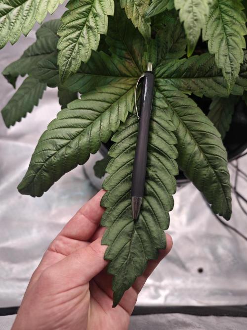 DoeJohn81 4th week since germination in Vevor Air Pods. My first attempt with them; before, I only had soil. I didn't have the time and didn't take much care of them. I started the seeds in rockwool and planted them. After 2 weeks, I checked again. Everything was fine; I increased the fertilizer a bit. Week 3 was great. Now week 4: These things are mutating. The best seeds I've ever had! 4 weeks! Everything is 100% bigger than what grows in my soil. Let's check out the size of my leaves. I decided to cut off the tops and will send them into Flowermode in the next 3 days.