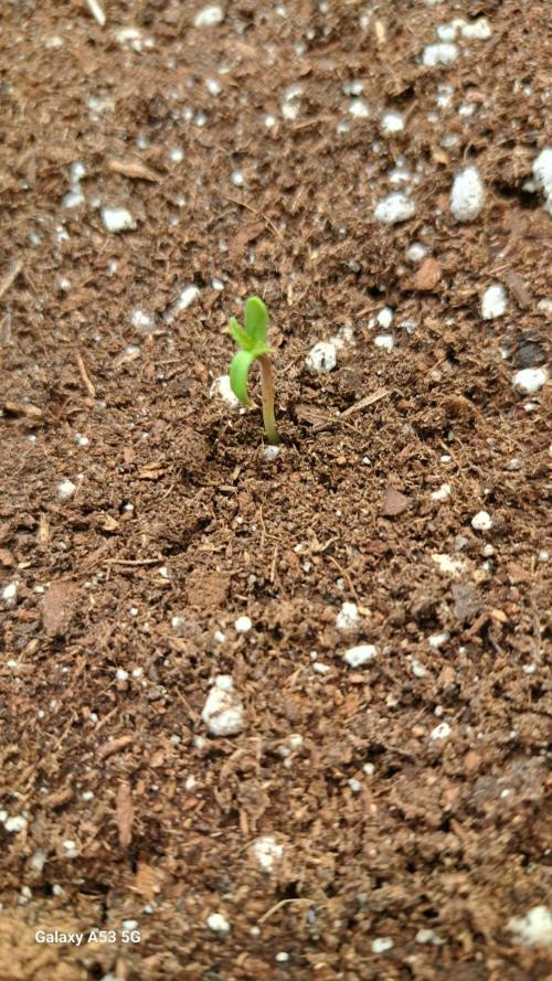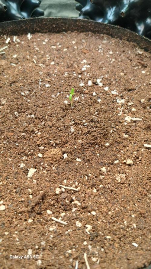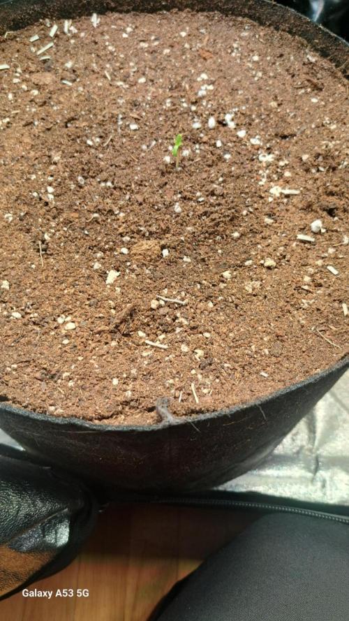 Daedra habe sie 12 h im Wasser glas einweichen lassen und anschließend im 20 l stofftopf in einer Kule mit 5 g Mykorhiza eingesetzt, nach 3 tagen ist sie gekeimt. Sie sieht vital aus und kommt sobald die Futur fertig ist ins 60er Zelt. Dies ist das Projekt meiner Freundin von nun an ich werde nur berichten.