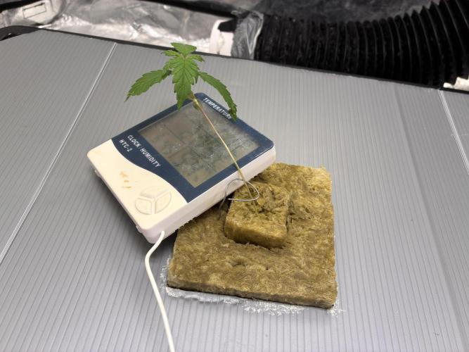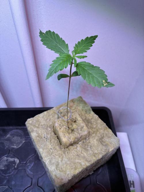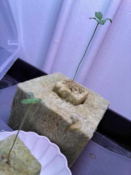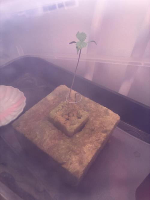 So I begun again and this time with RQS "Sour Diesel". I planted two seeds to a shot glass filled with ionized water, both germinated but the other died over night during seedling stage. Other one survived to the point that it was time to place it on the NFT system.